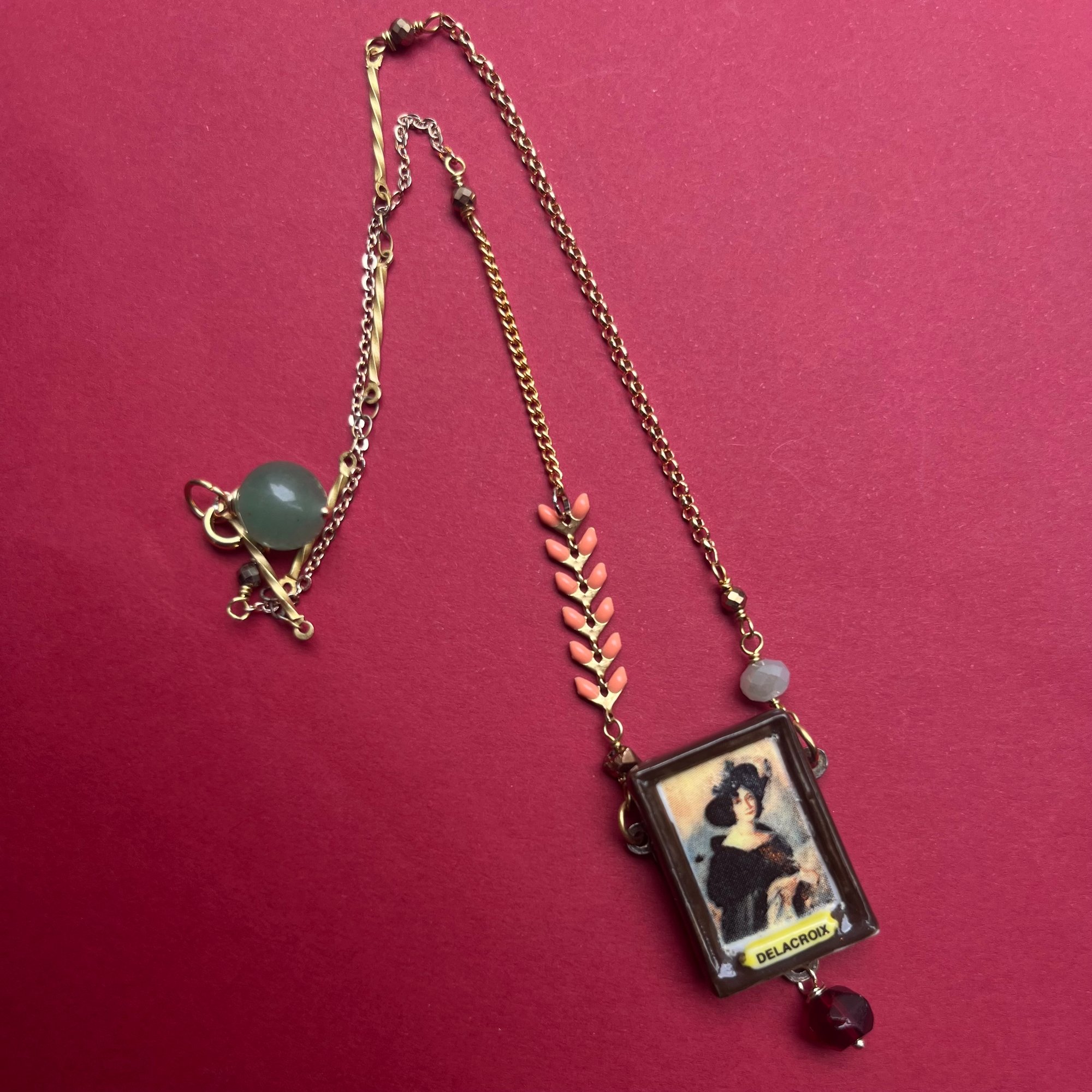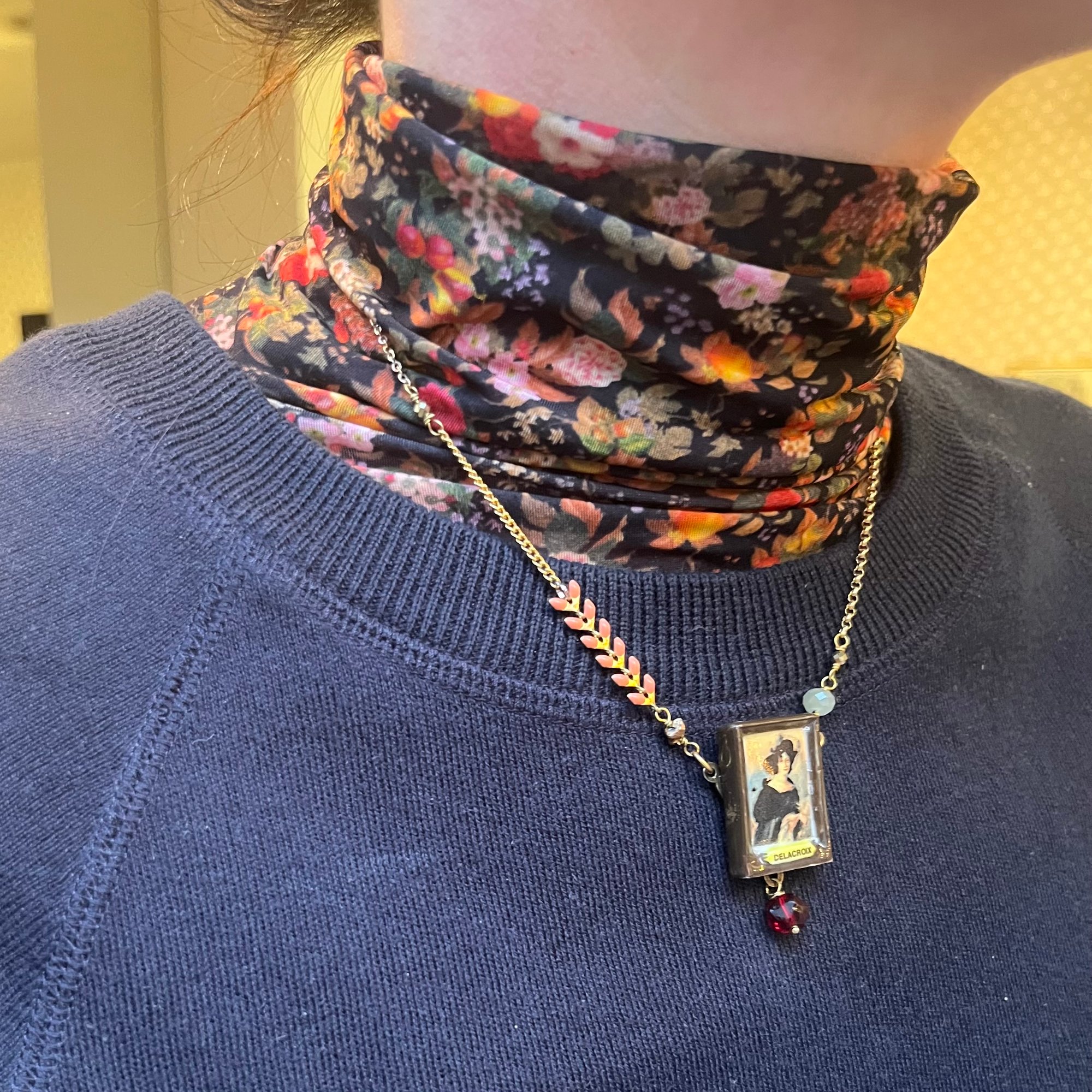 Le collier "LINTON" est une pièce unique composée de matériaux upcyclés.