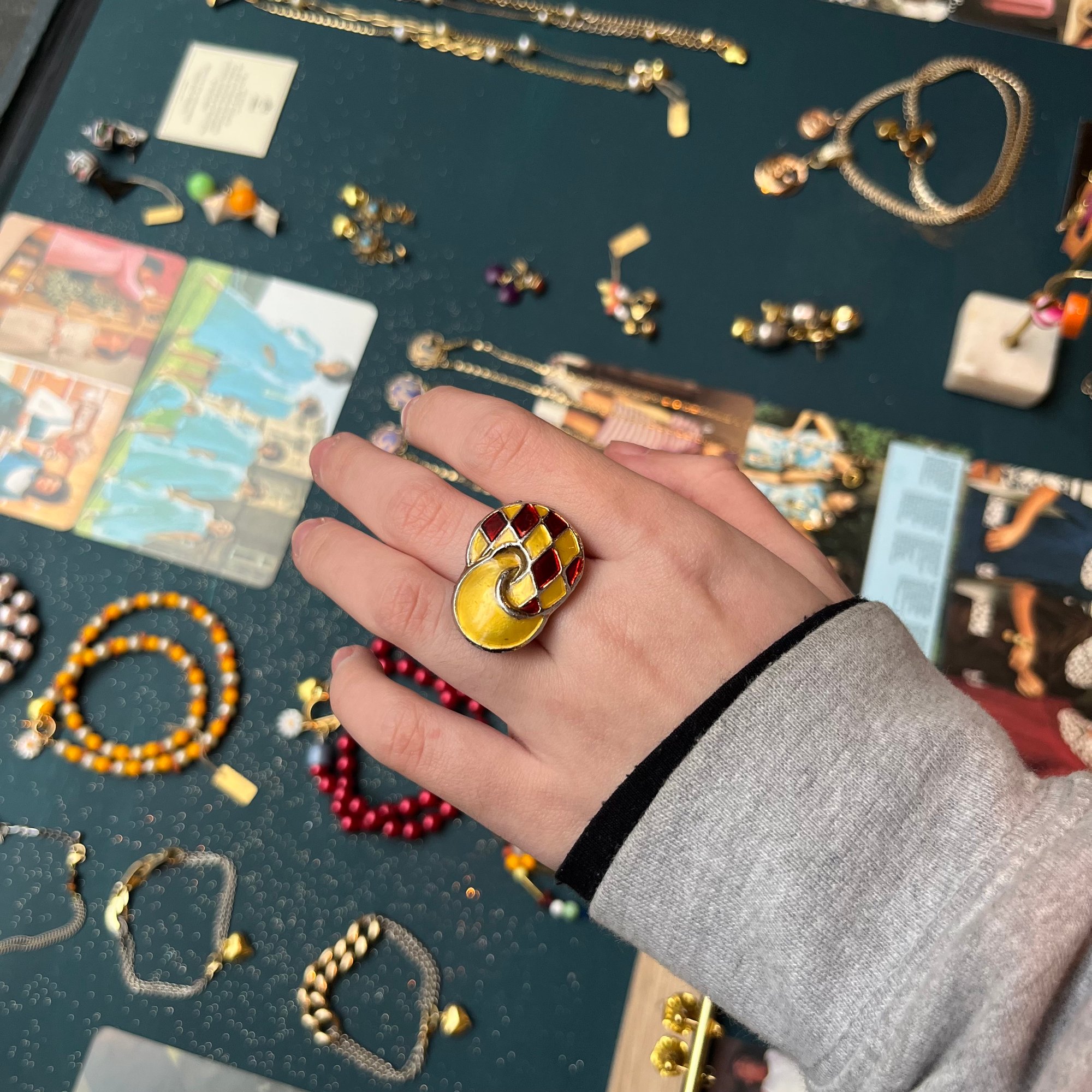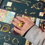 La bague "GOLDIE" est une pièce unique composée de matériaux upcyclés.