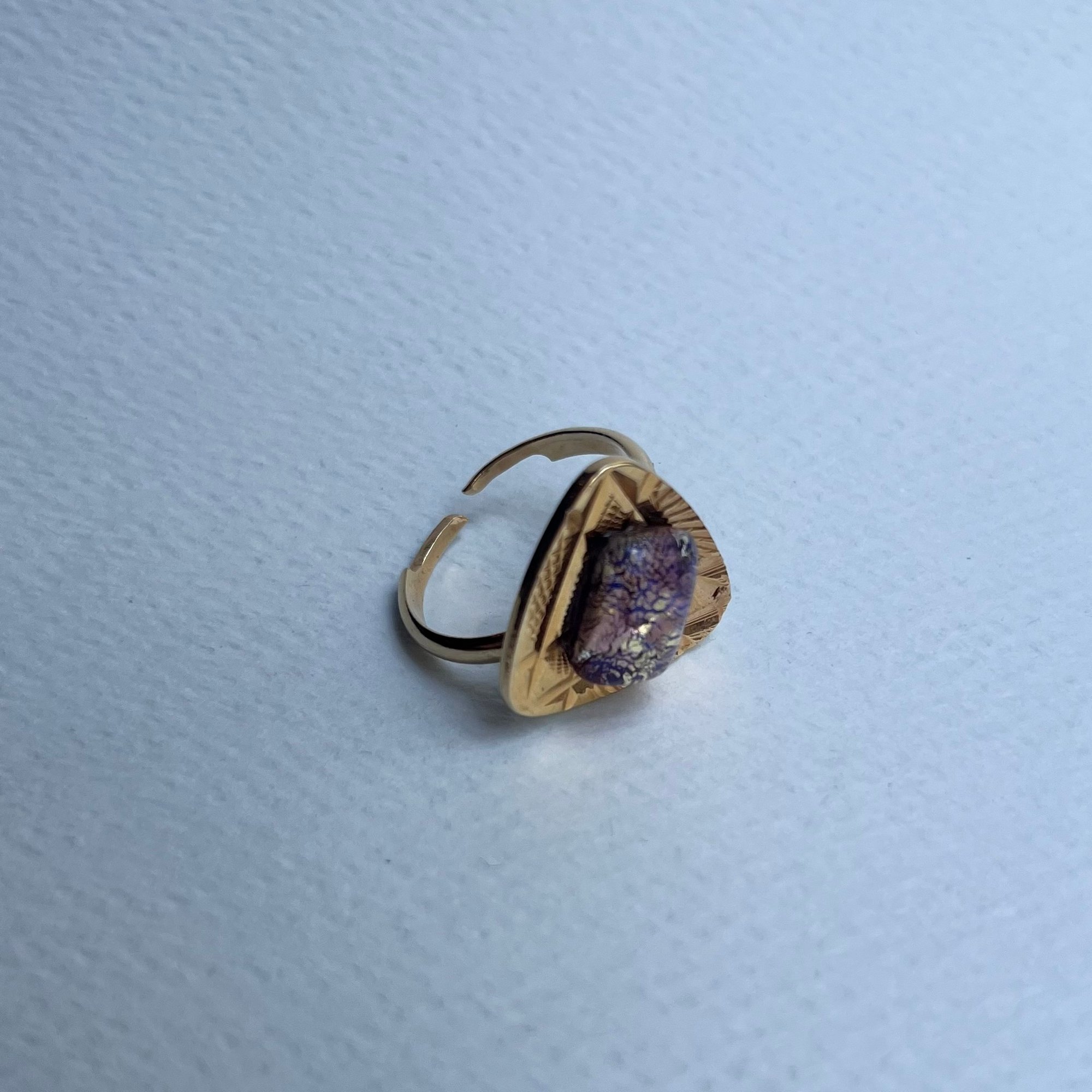 La bague réglable « MASSIAC » est une pièce unique composée avec des matériaux upcyclés.
