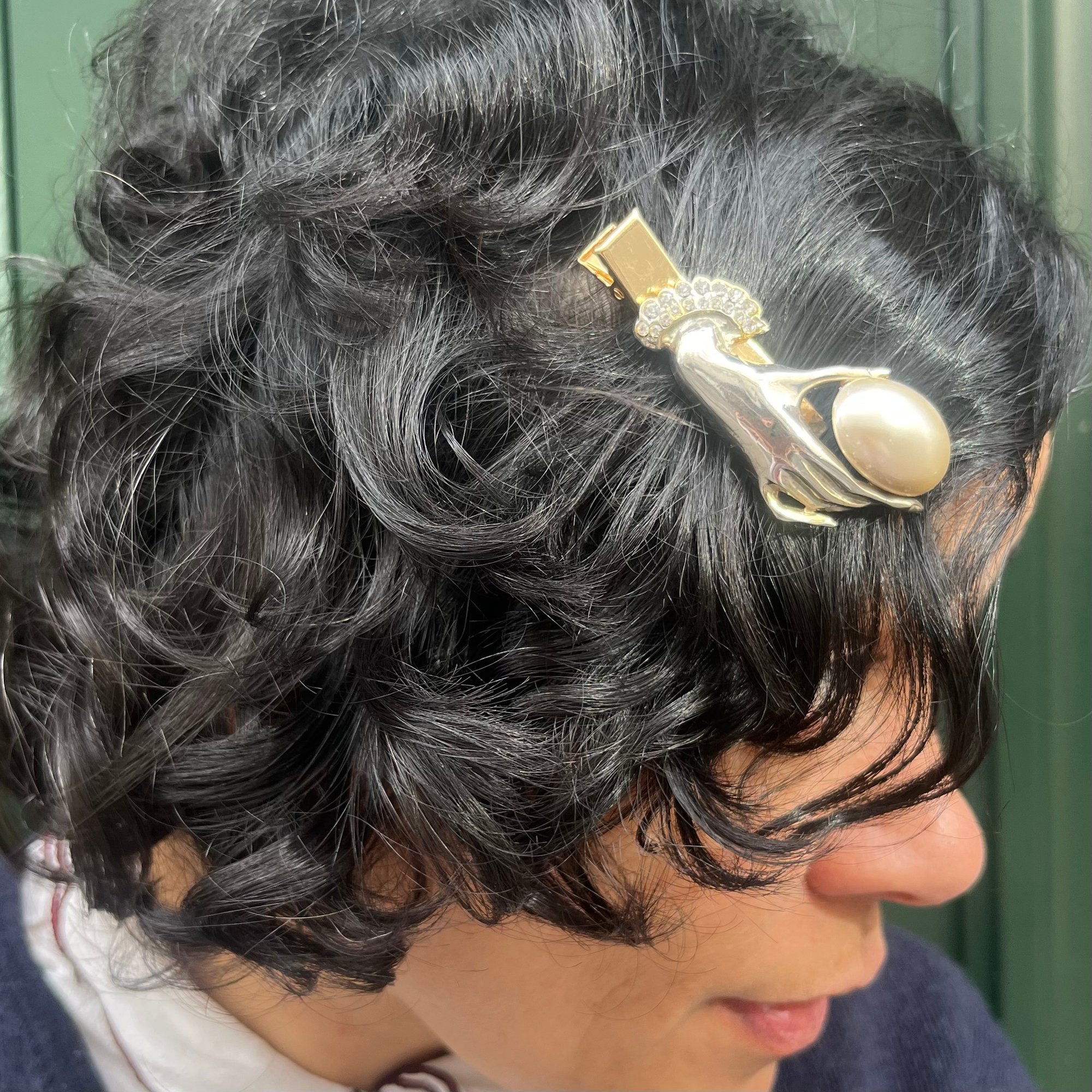 La barrette « ELETTRA » est une pièce unique composée dans notre atelier-boutique parisien.