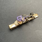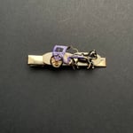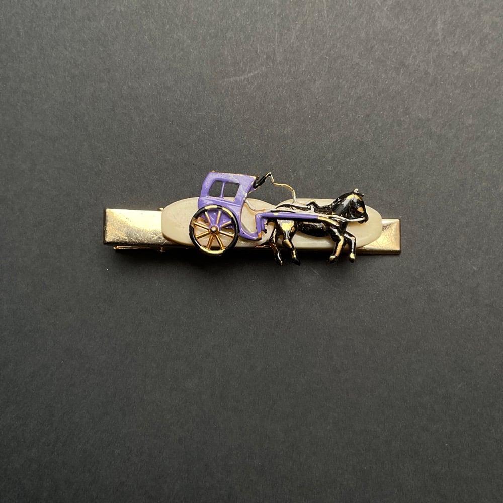 La barrette « GIOCONDA » est une pièce unique composée avec une broche calèche vintage émaillée lilas et blanc crème.