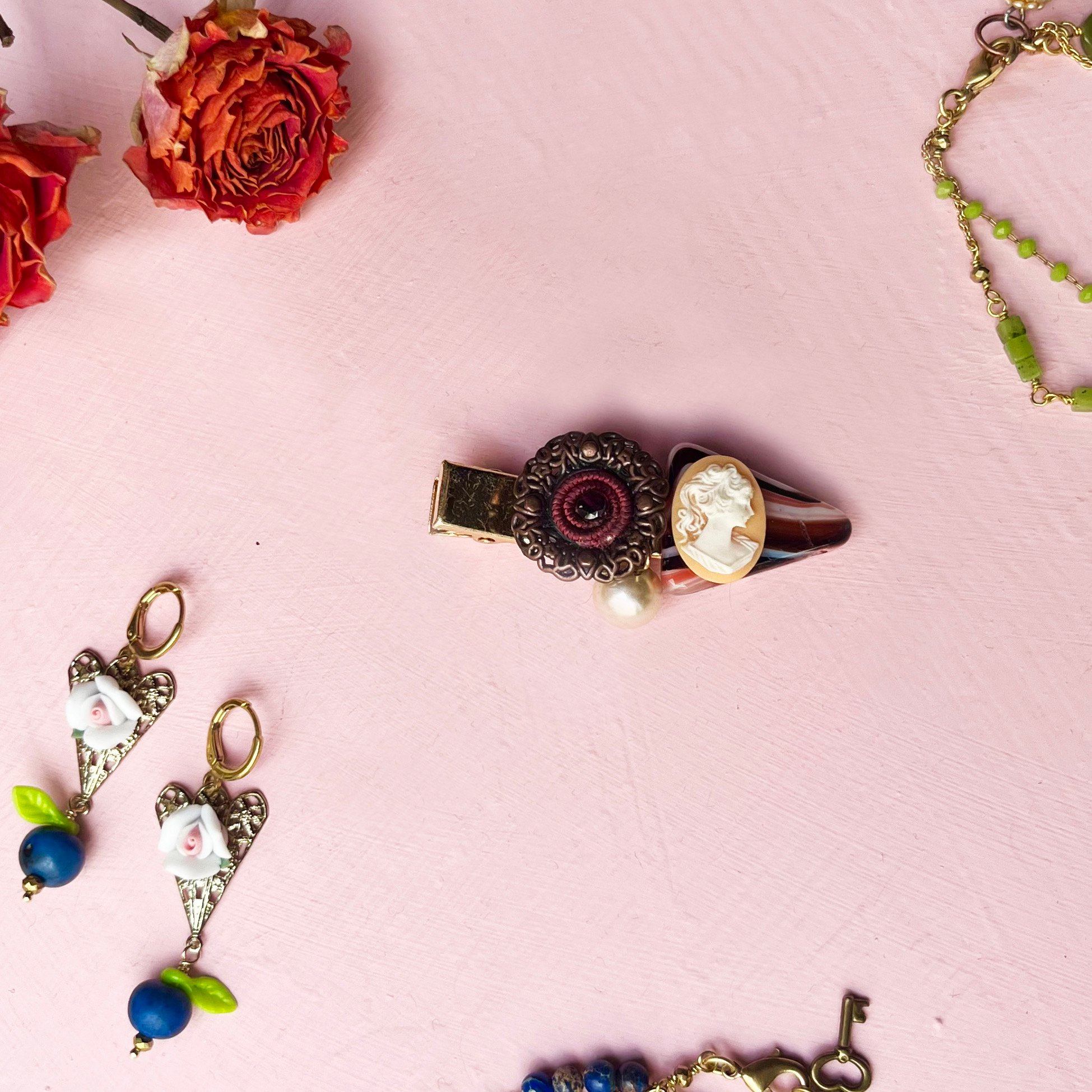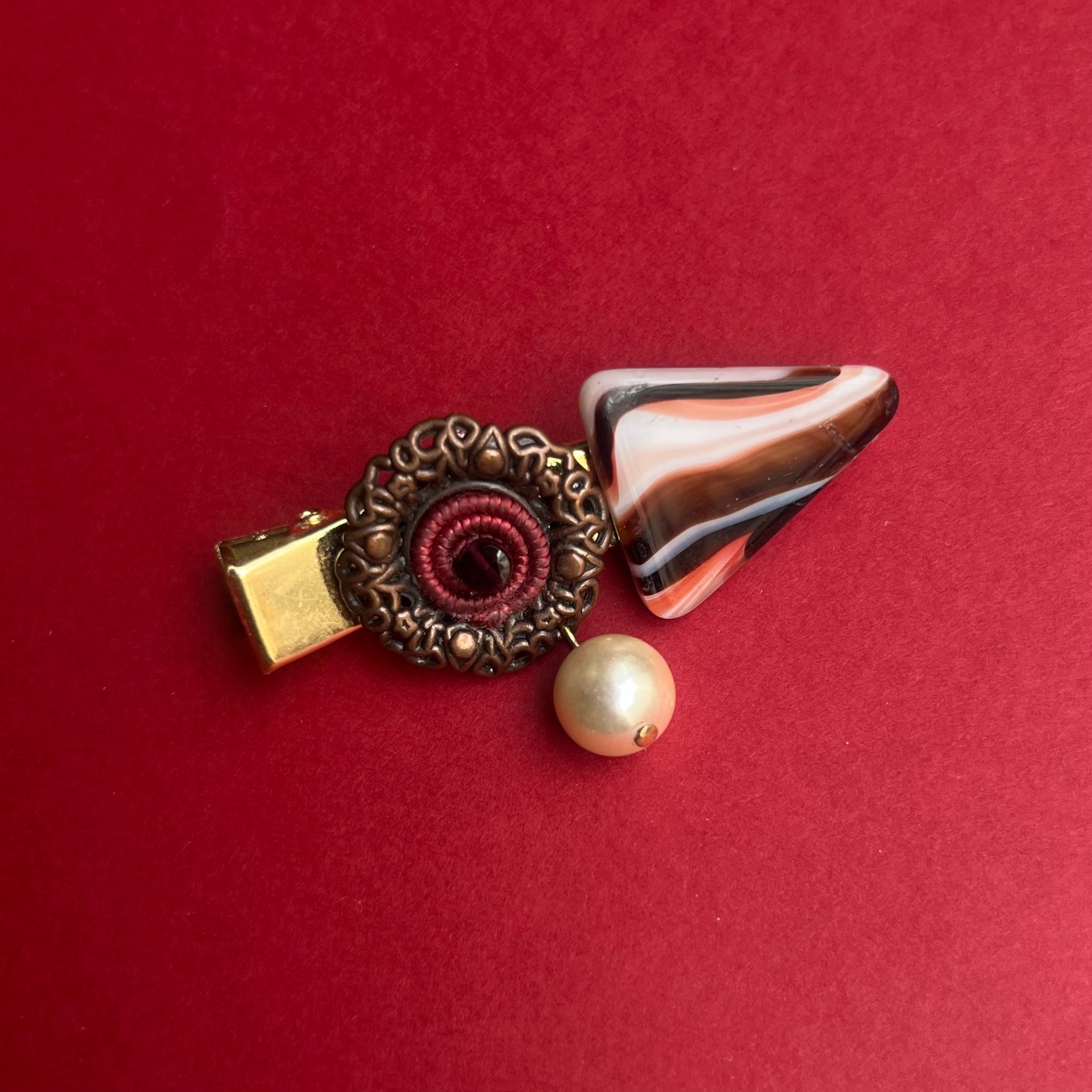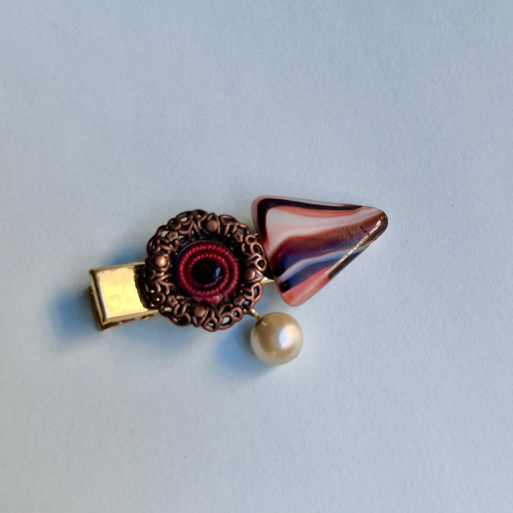 La barrette "ORVILLET" est une pièce unique composée de matériaux upcyclés.