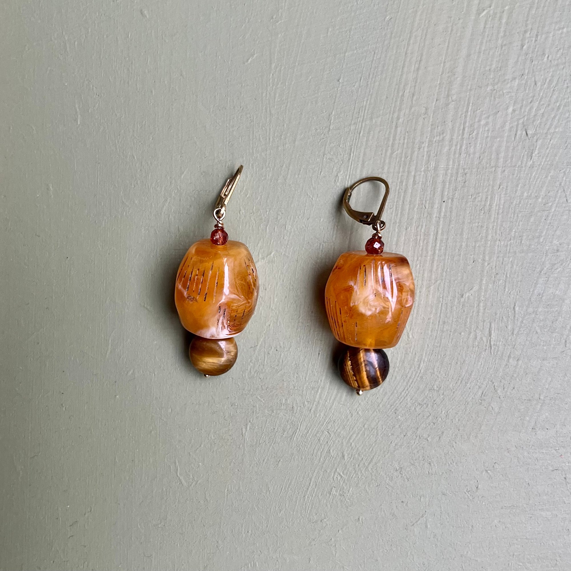 Les boucles d'oreilles « VALERY » sont une pièce unique composée de matériaux upcyclés.