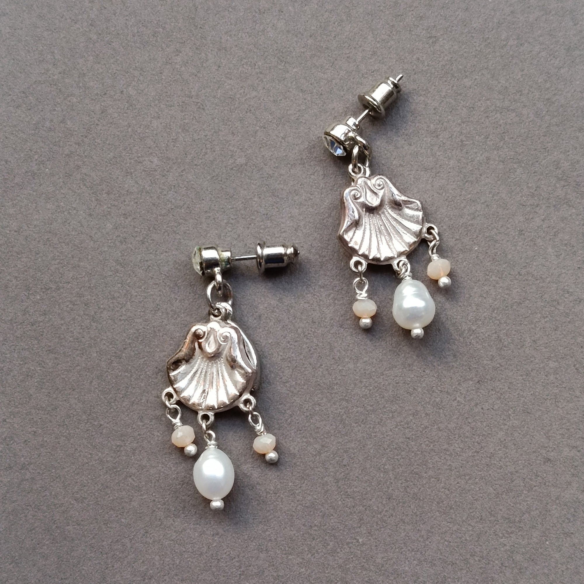 Les boucles "MEDIANA" sont une pièce unique composée de matériaux upcyclés, petites coquilles vintage argentée ornées de perles de culture.
