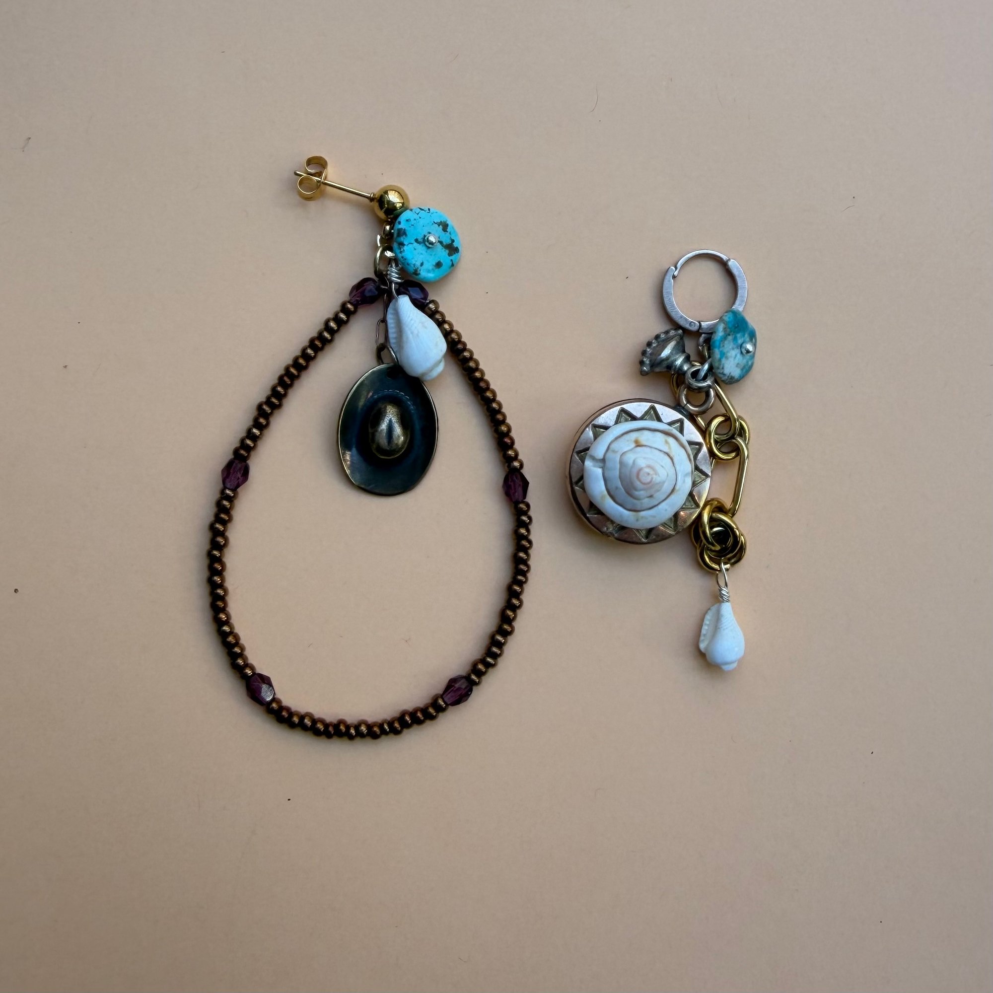 Les boucles "COW-BOY" sont une paire de boucles asymétriques composées de matériaux upcyclés.