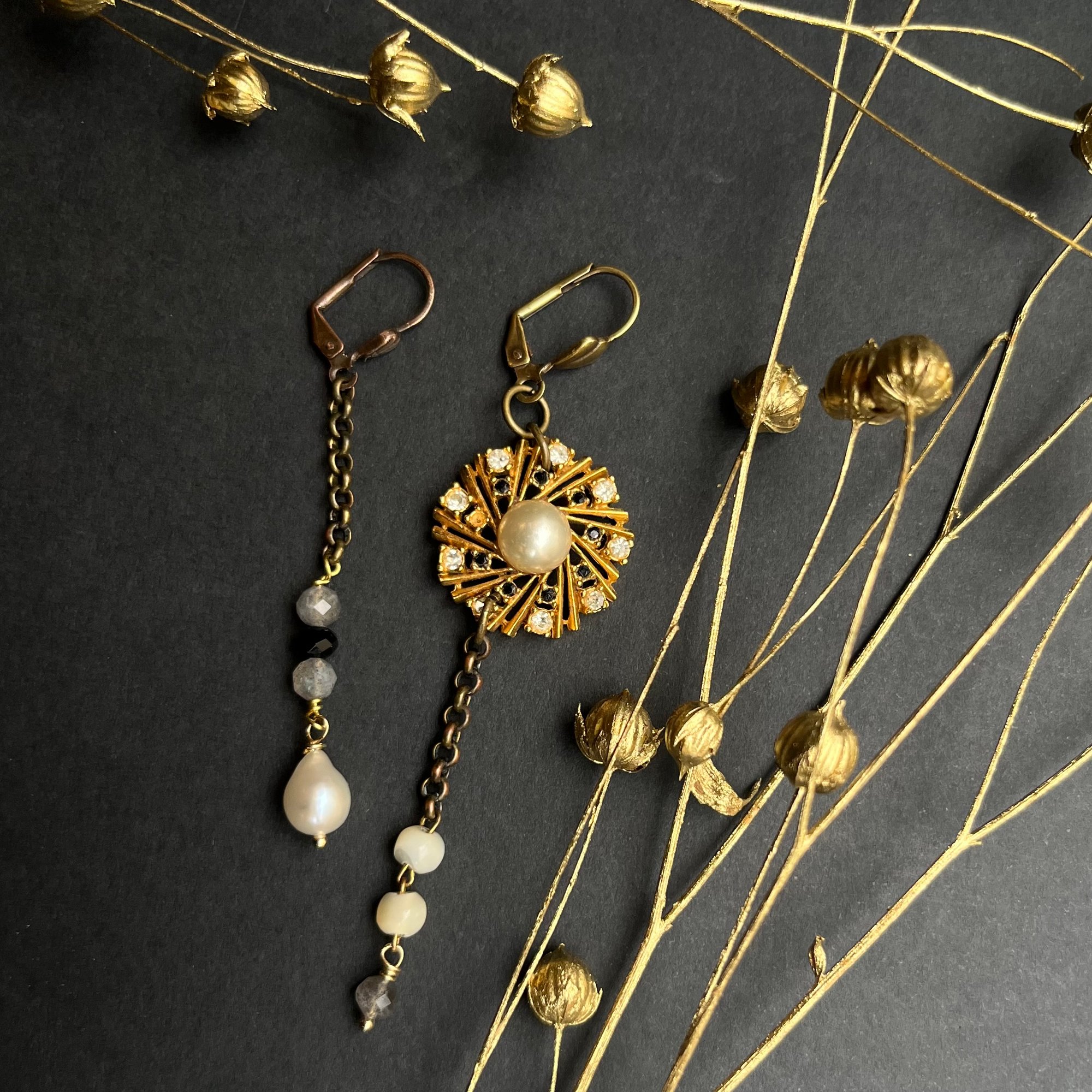Les boucles asymétriques "KOKKINAKI" sont une pièce unique composée de matériaux upcyclés.