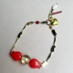 Le bracelet "ELLI" est une pièce unique composé à partir d'une chaîne en laiton doré recyclée, maillons graphiques, et de deux poissons en résine coloris corail récents.