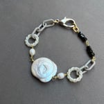 Le bracelet "FÉLIX" est une pièce unique composée avec des matériaux upcyclés.