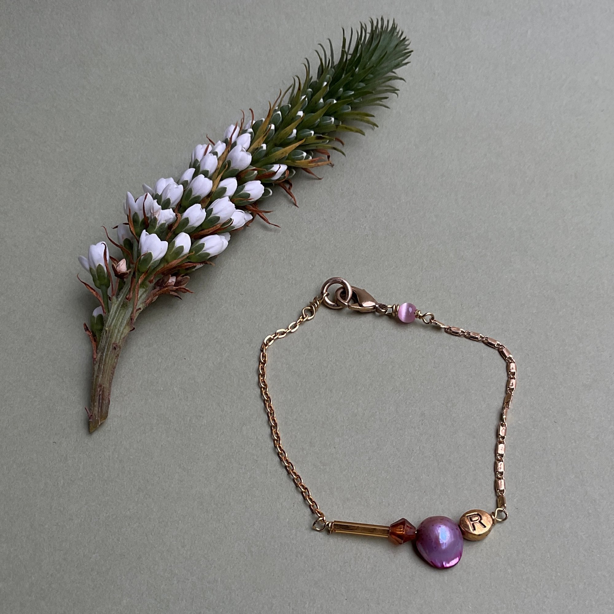 Le bracelet "ROSE" est une pièce unique composée de matériaux upcyclés pour les perles et de chaïnes récentes en acier inoxydable doré.