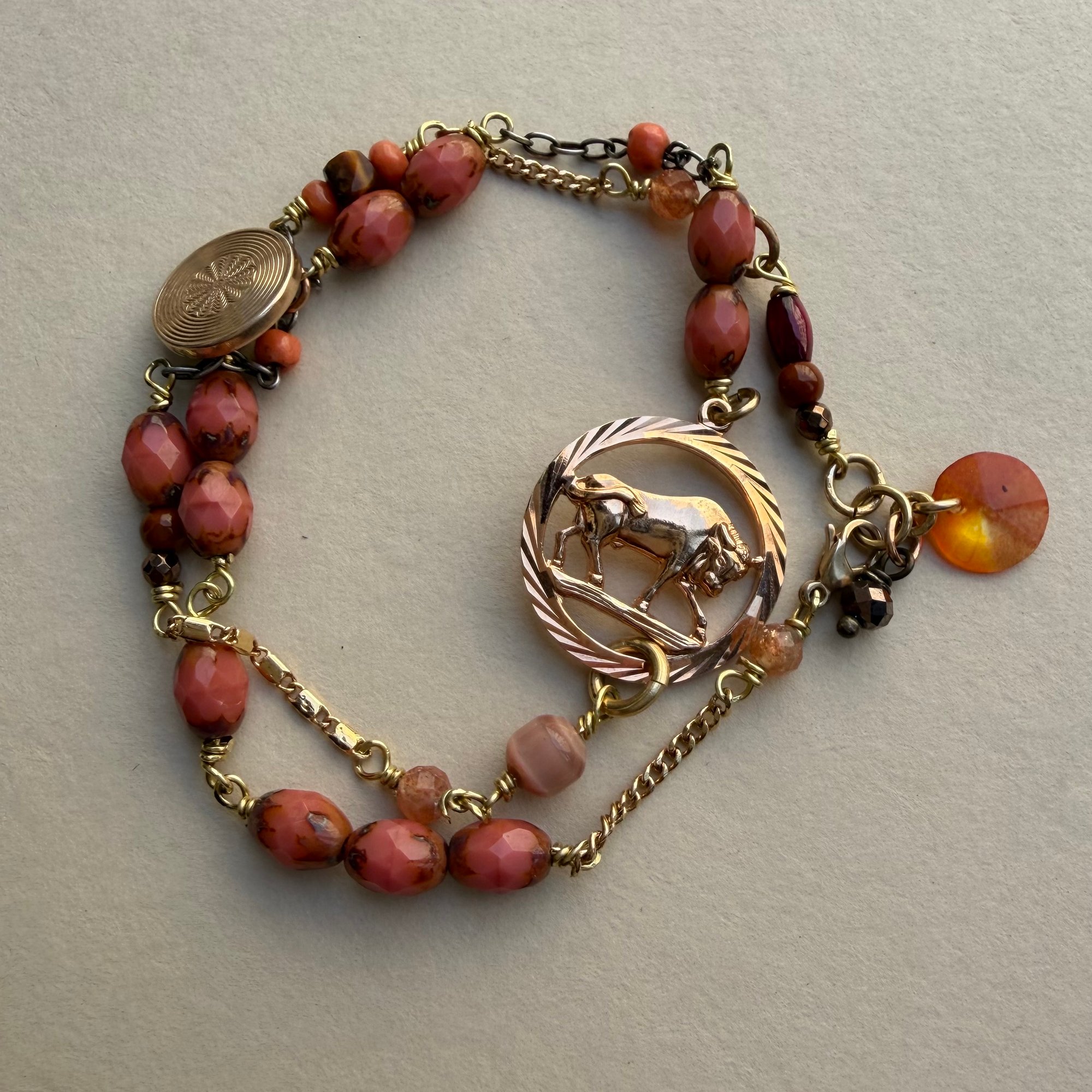Le bracelet médaille vintage "TAUREAU" est une pièce unique composée de matériaux upcyclés. Collection Zodiaque "ASTRAL"