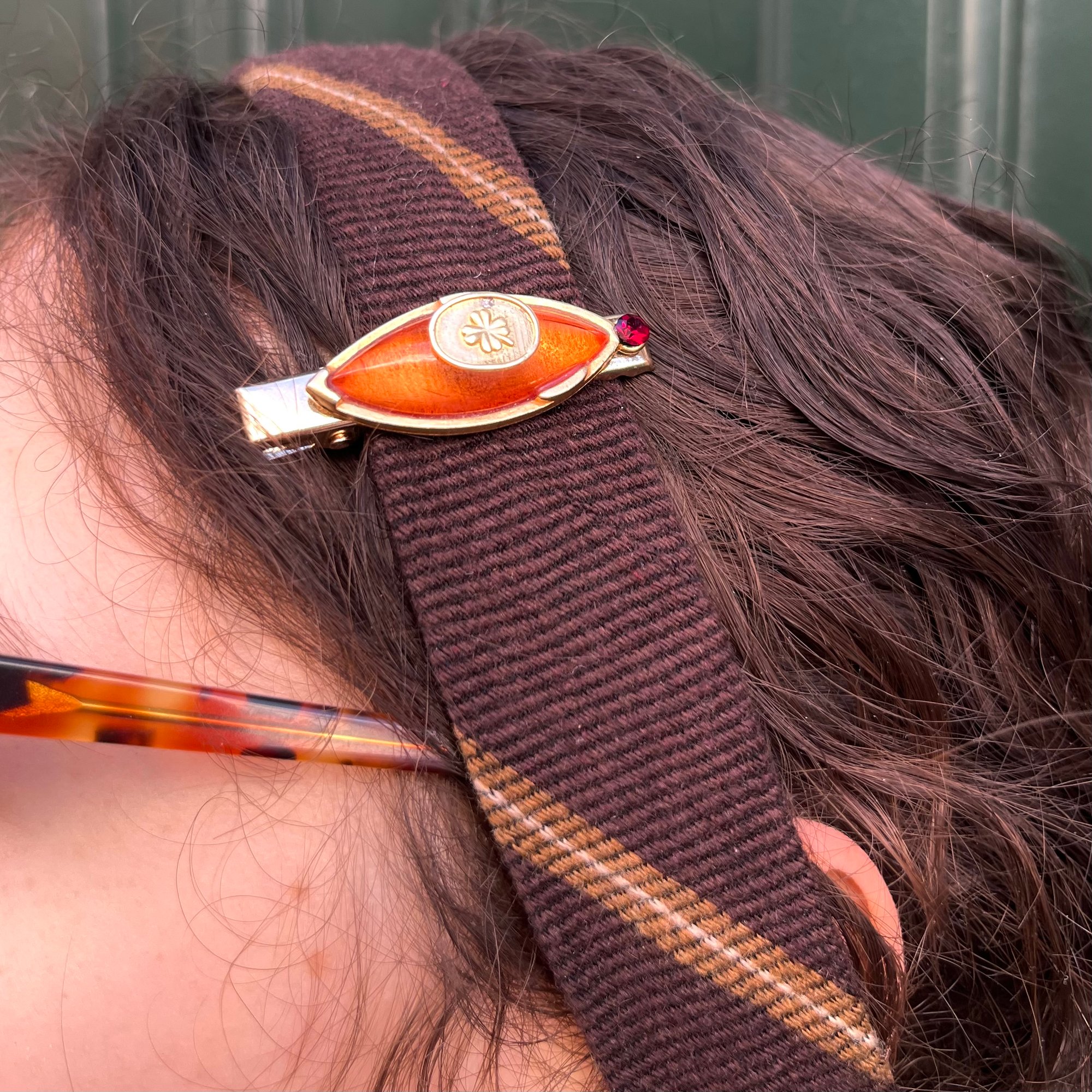 La barette "BLITON" est une pièce unique composée de matériaux upcyclés.