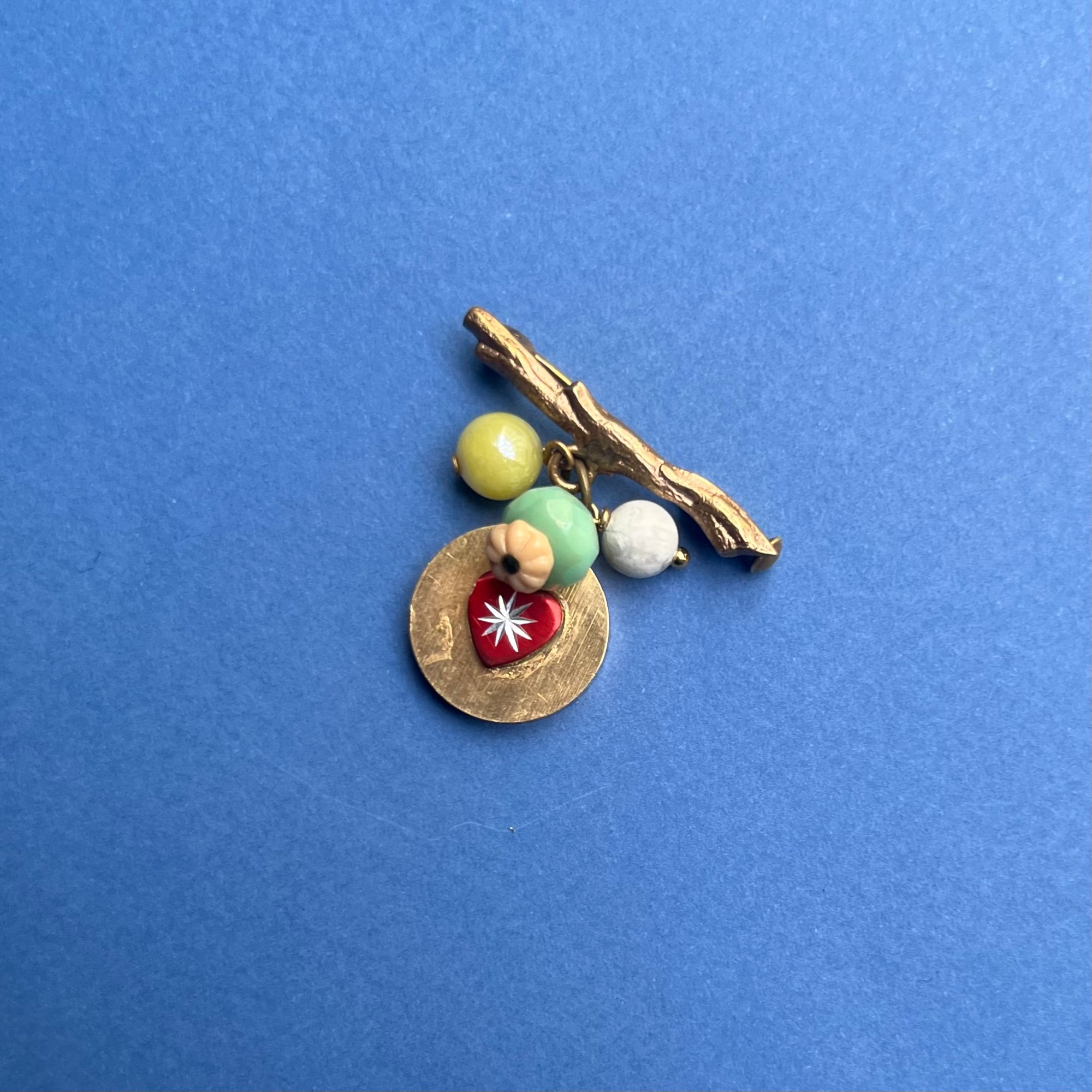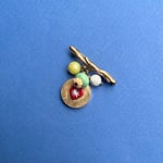 La broche "DAHO" est une pièce unique composée avec des matériaux upcyclés.collection Pop Modèle "LIO" Avant-première été 26