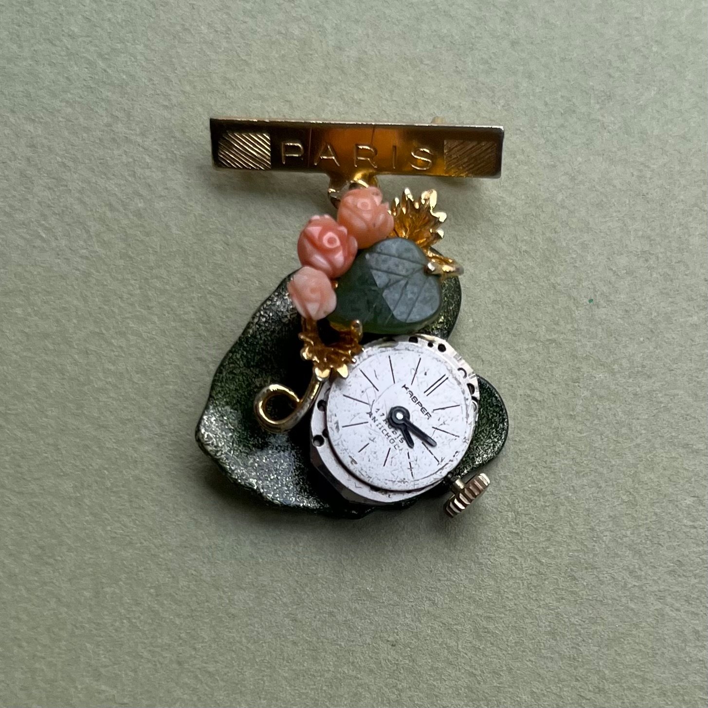 La broche "NOUETTES" est une pièce unique composée avec des matériaux upcyclés.Collection "COMTESSE DE SÉGUR"