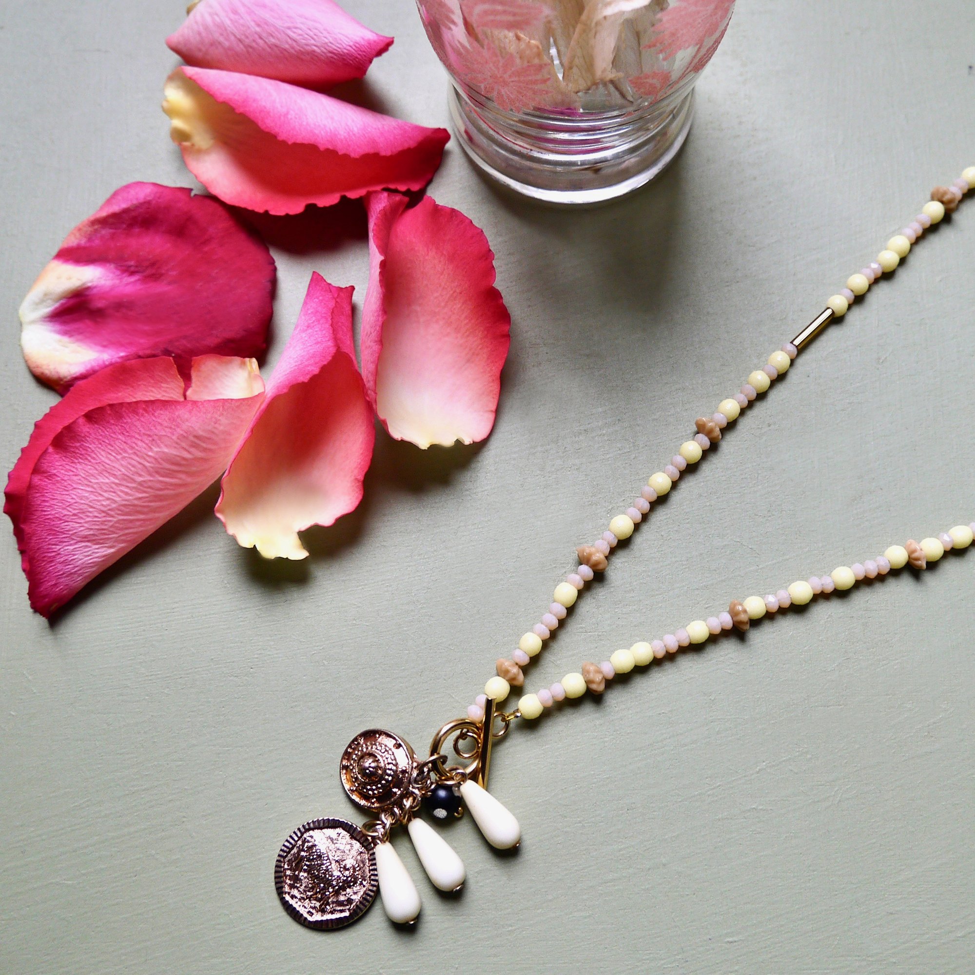 Le collier "ARIES" est une pièce unique composée de matériaux upcyclés.