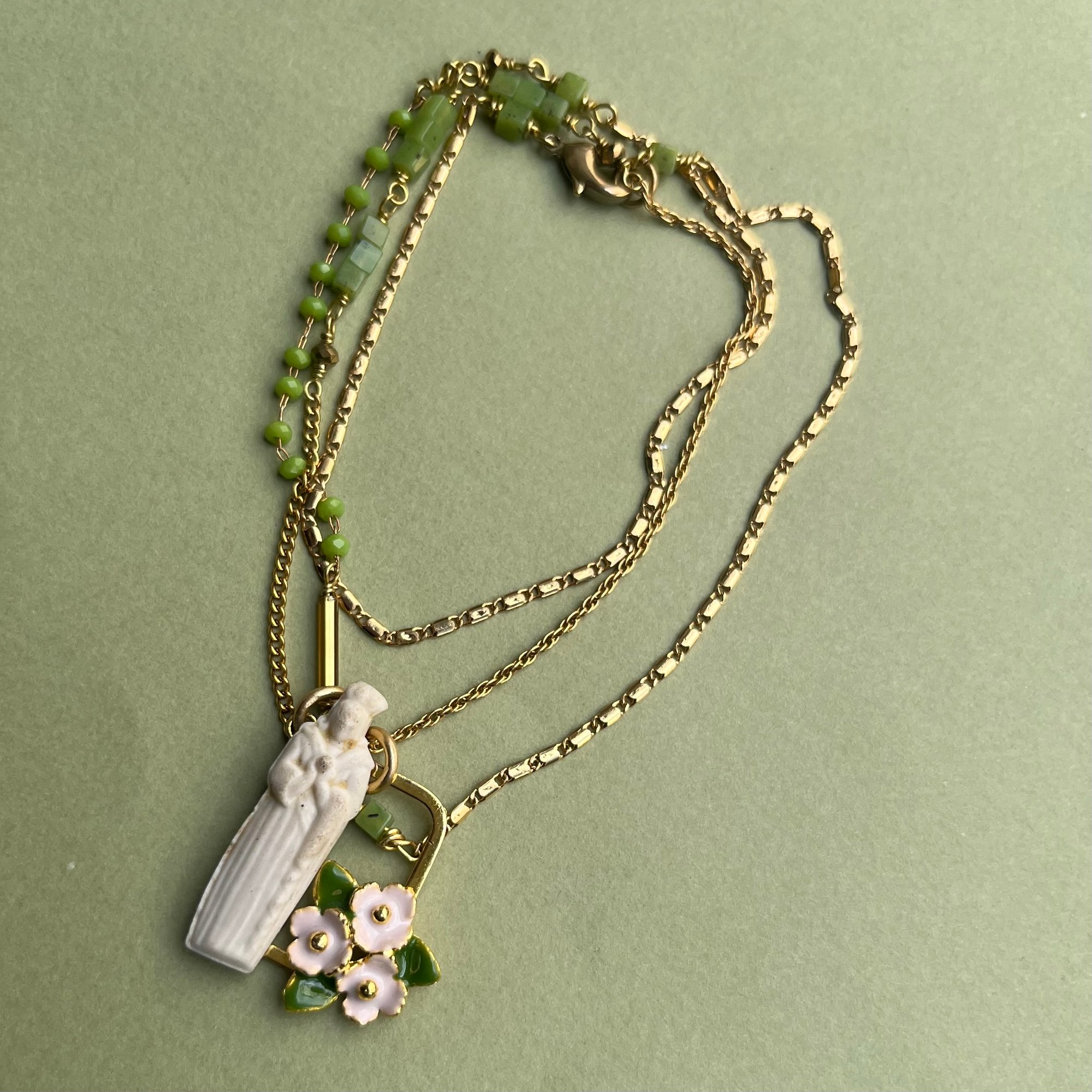 Le collier "Blondine" est une pièce unique composée de matériaux upcyclés.