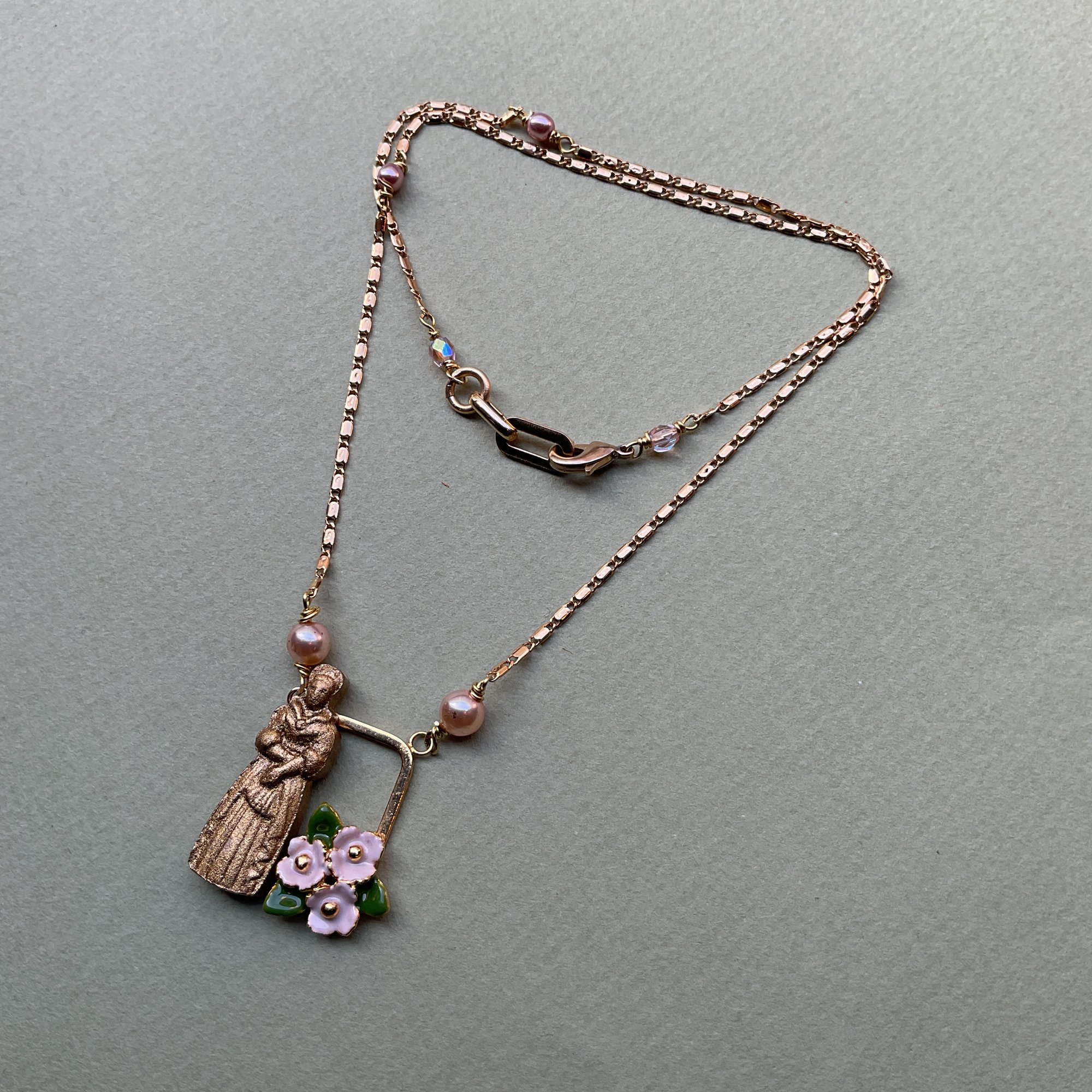 Le collier "FABIOLA" est une pièce unique composée avec des matériaux upcyclés.Collection printanière "COMTESSE DE SÉGUR"