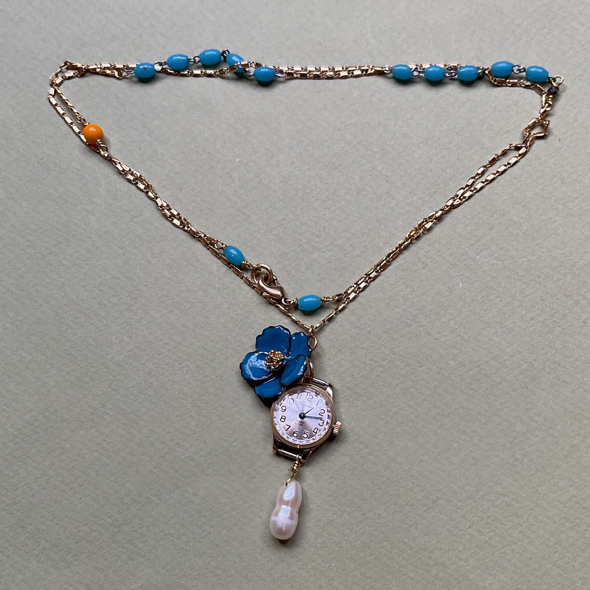 Le collier "FLORE" est une pièce unique composée avec des matériaux upcyclés.Collection printanière "COMTESSE DE SÉGUR"