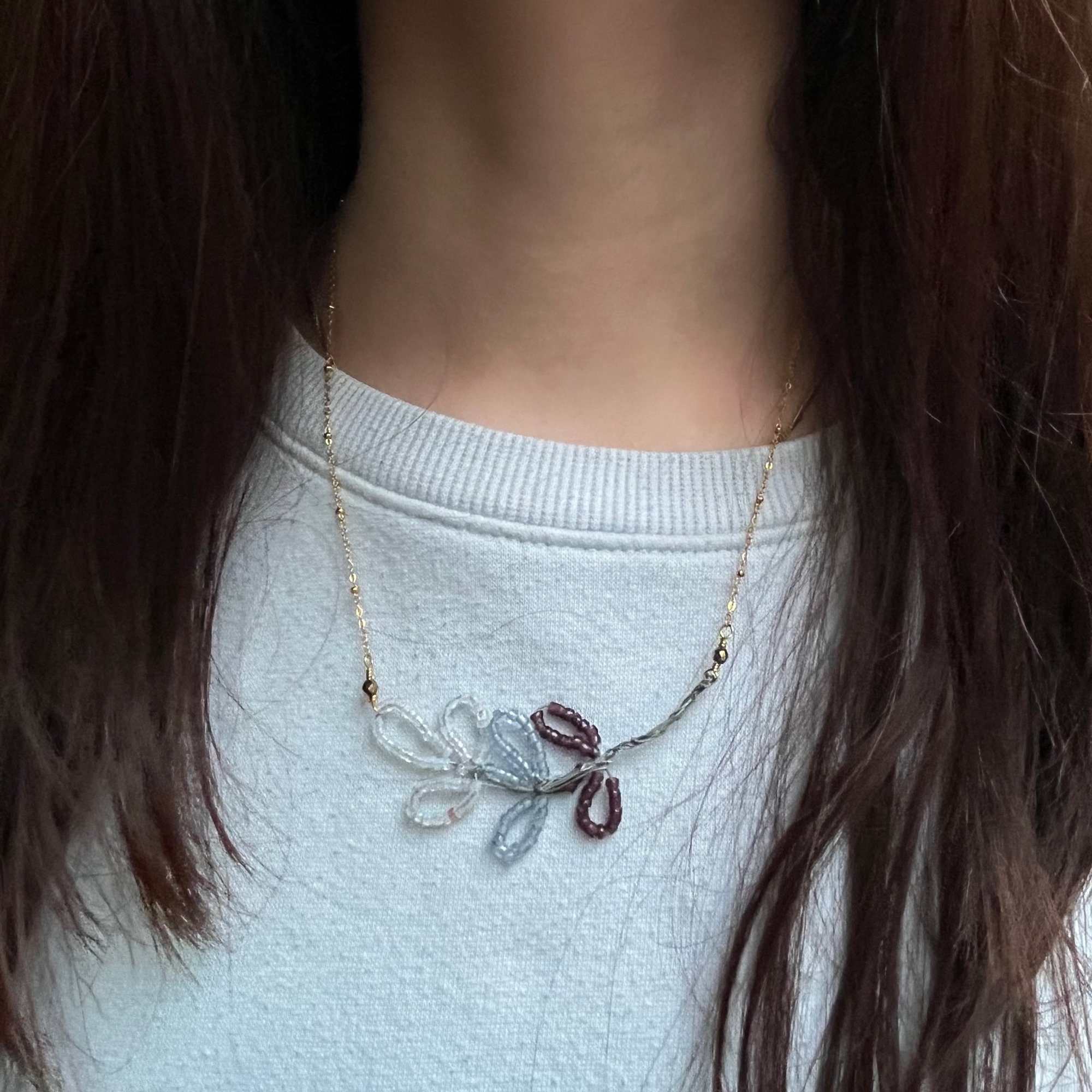 Le collier "FORNEY" est une pièce unique composée d'une branche de perles rocailles vintage.