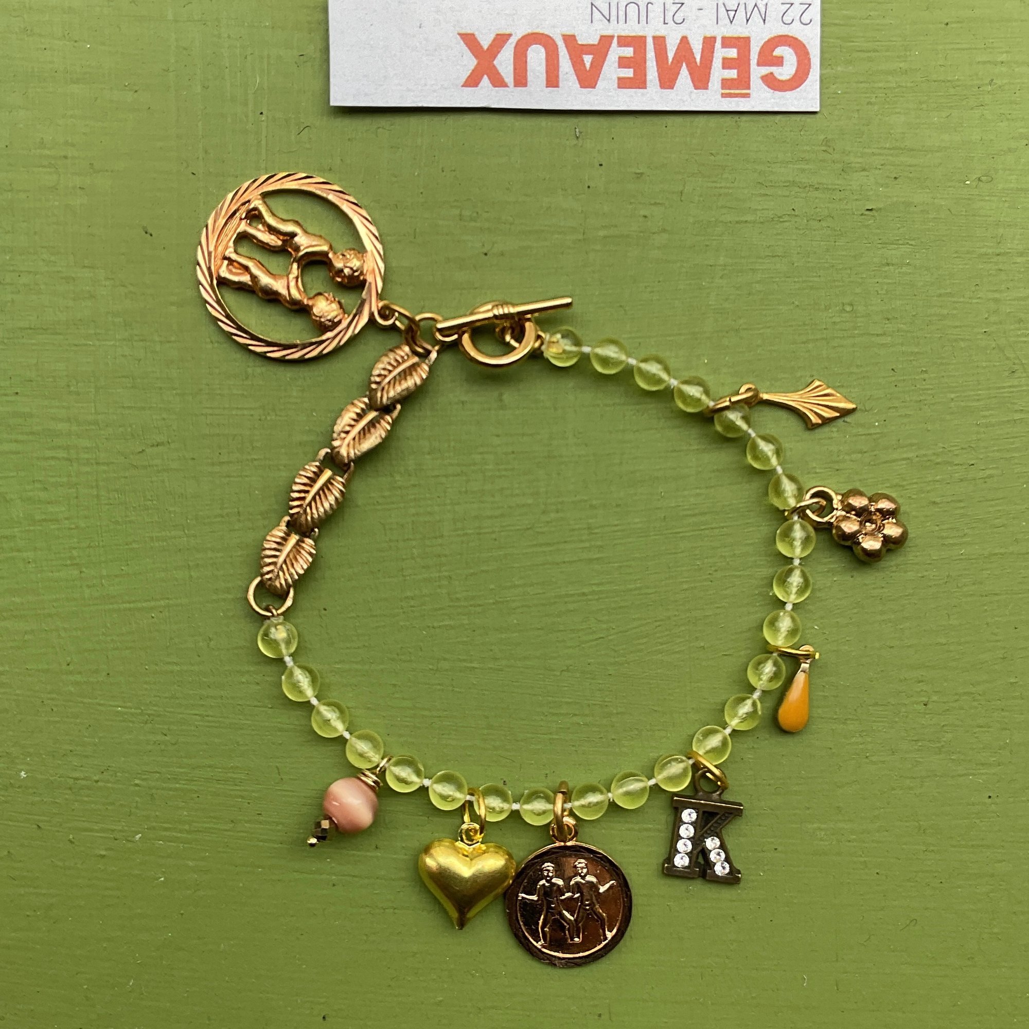 Le bracelet "GEMINI" est une pièce unique composée avec des matériaux upcyclés.