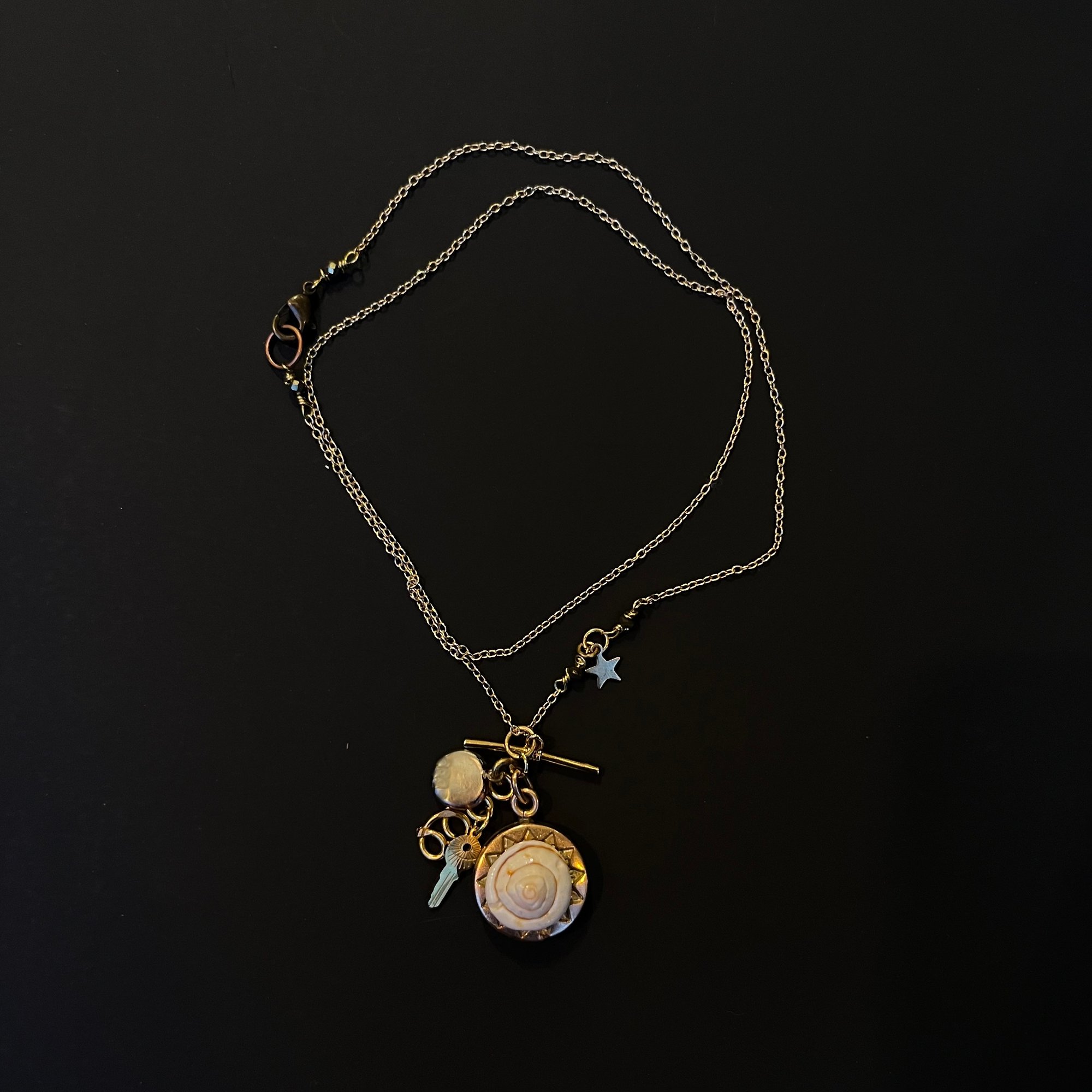 Le collier "LUISA" est une pièce unique composée avec des matériaux upcyclés.Collection "MARIA CALLAS"Mesures : Longueur chaine 54 cmPendentifs sautoir 3 cm