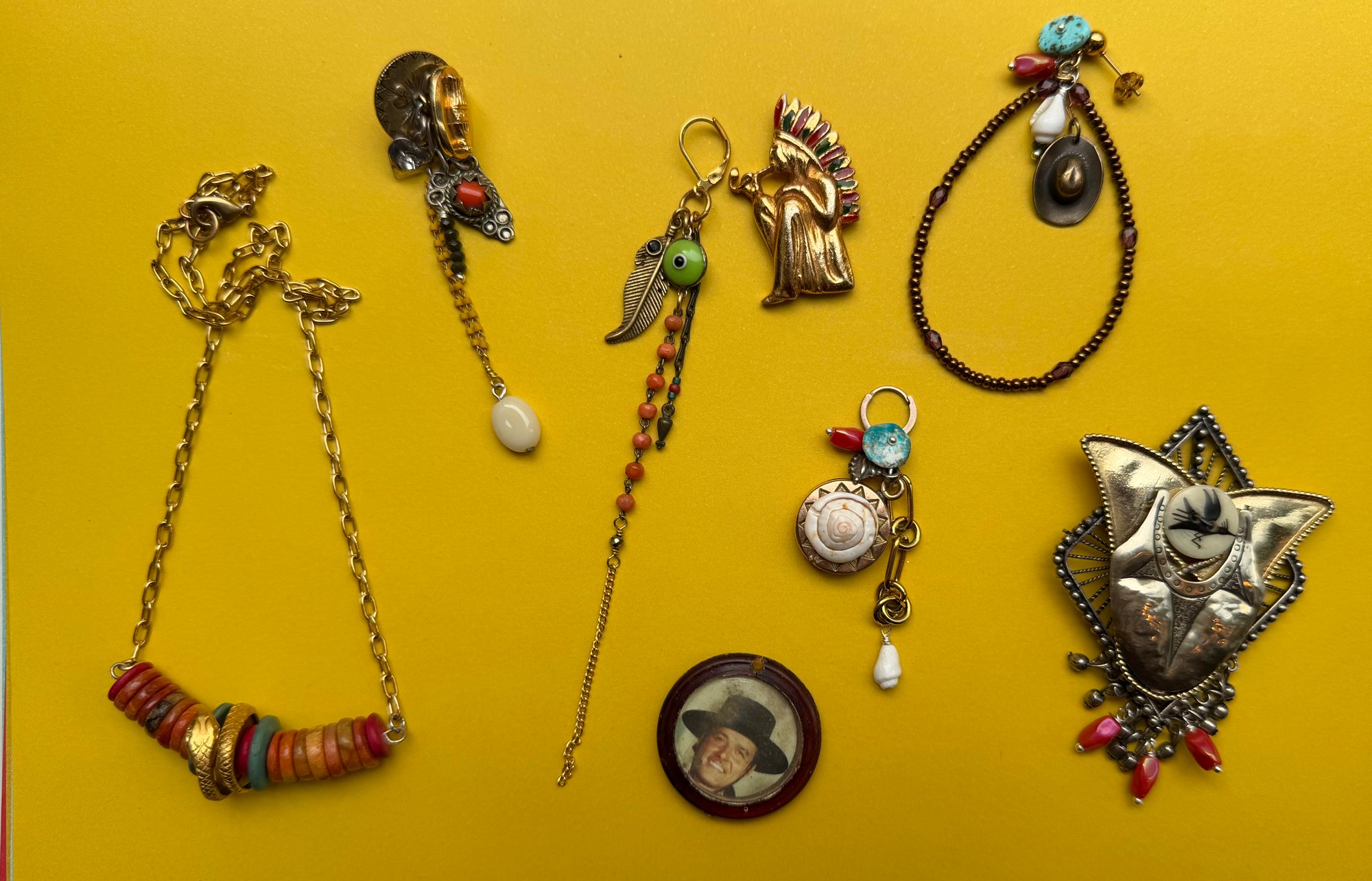 Le collier "MAYBELLE" est une pièce unique composée de matériaux upcyclés. Collection "JUNE CARTER CASH"