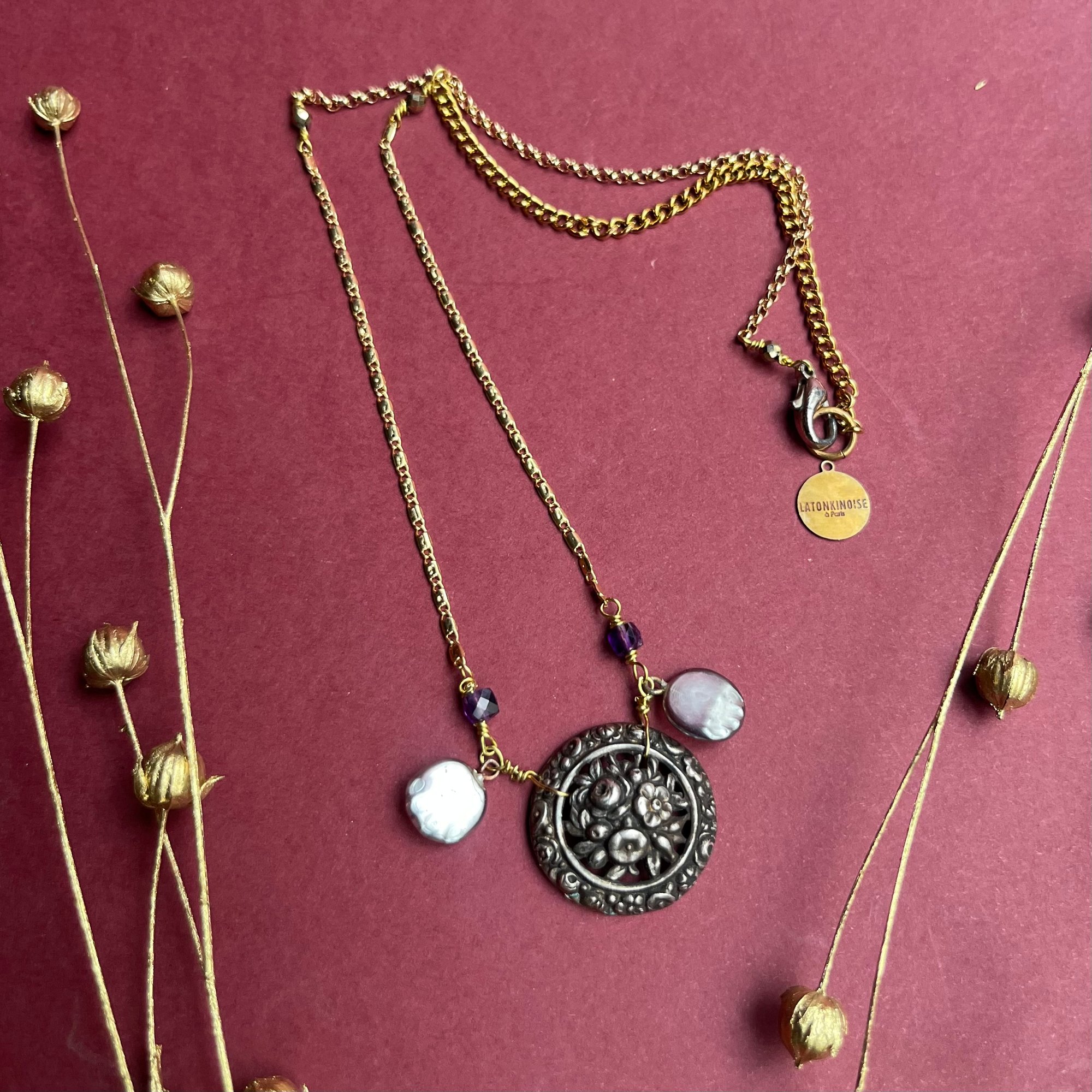 En pièce unique, le collier "RAIMUNDO", petite boucle ancienne upcyclée, fait partie de la collection "MARIA CALLAS".