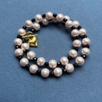-1- perles nacrées roses et petites perles noires