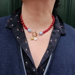 Les perles enfilées sur 34 cm permettent de faire un bracelet, ce bijou peut-être livré en collier sur longueur 40 cm.