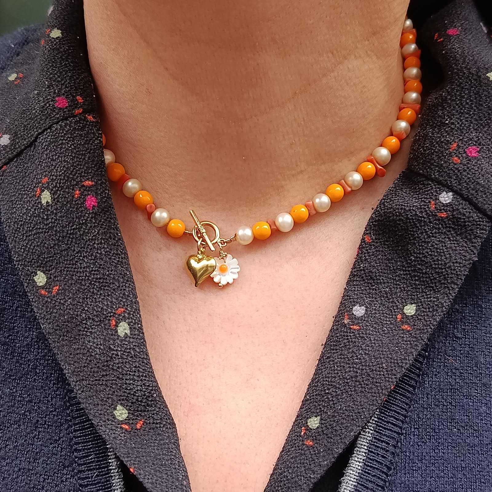 -2- perles vintage coloris mandarine et éclats de corail