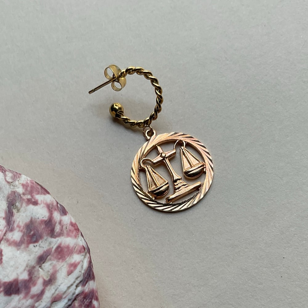 La créole Solo « BALANCE » a été réalisée en 1 exemplaire avec une médaille vintage plaquée or et une créole torsadée en acier inoxydable doré.