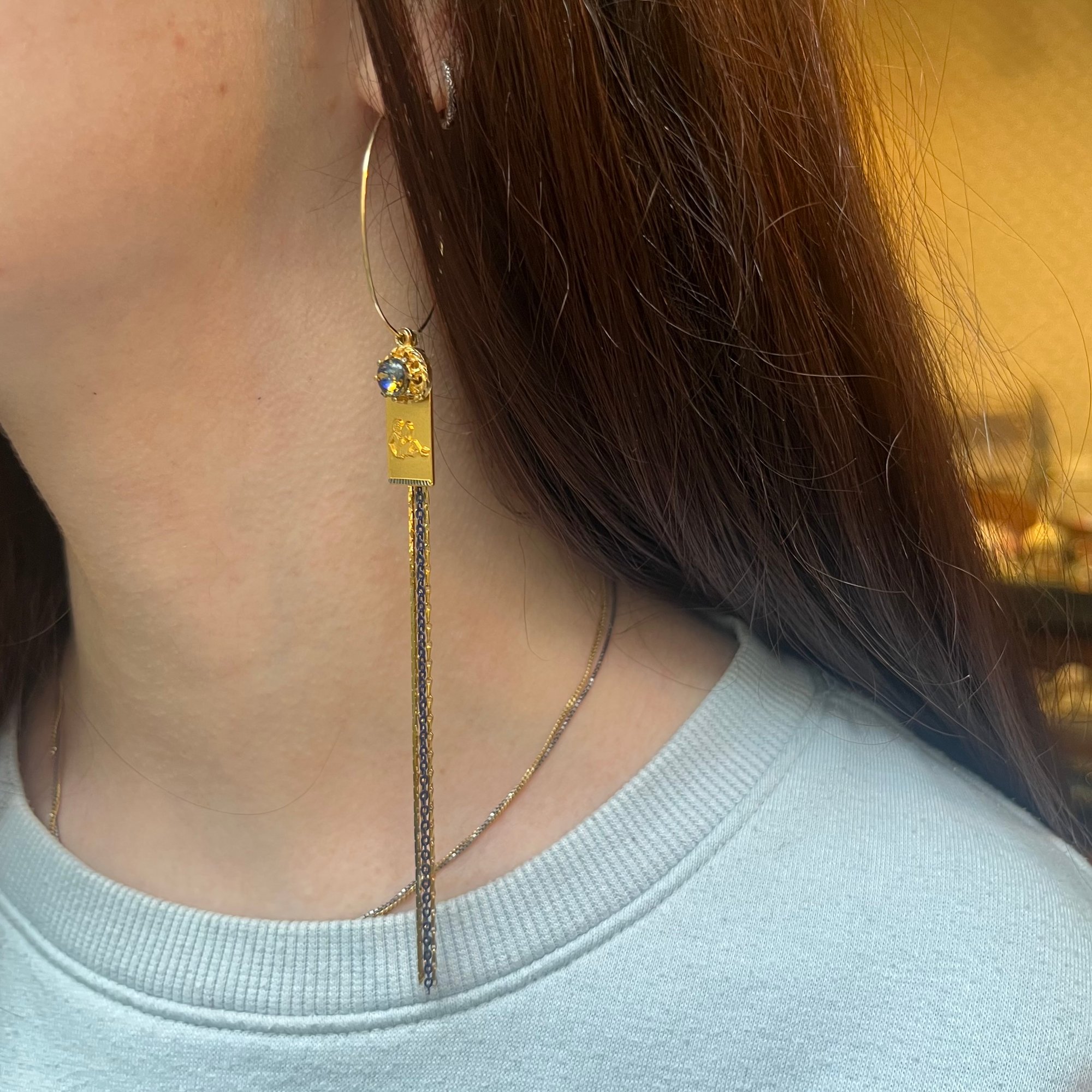 La créole solo "CAMILLE" est une pièce unique composée avec des matériaux upcyclés.