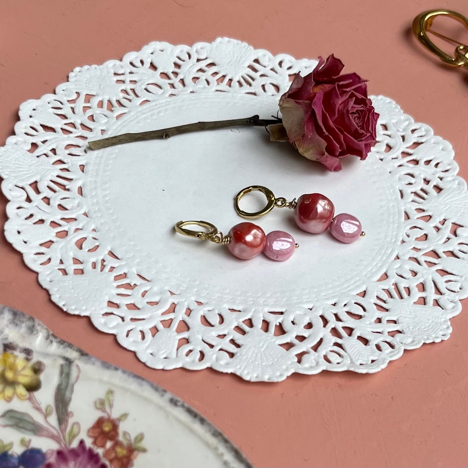 Les mini-boucles "ROSTOPOVITCH" sont une mix de perles vintage (coloris brique nacré) et de perles récentes (rose).Leur attache est en laiton brut.Collection Printanière "COMTESSE DE SÉGUR"