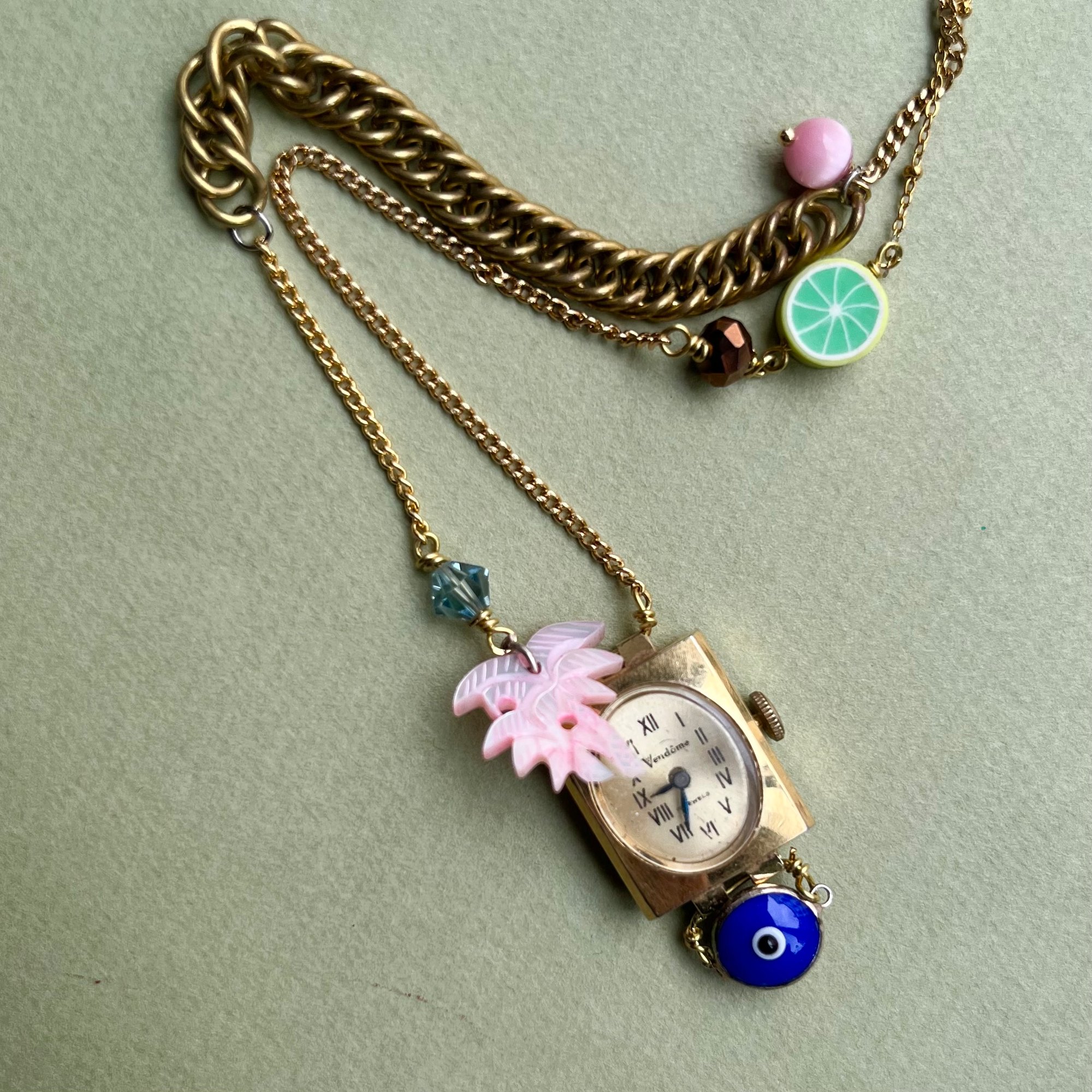 Le sautoir "ARNOUX" est une pièce unique composée avec des matériaux upcyclés.
